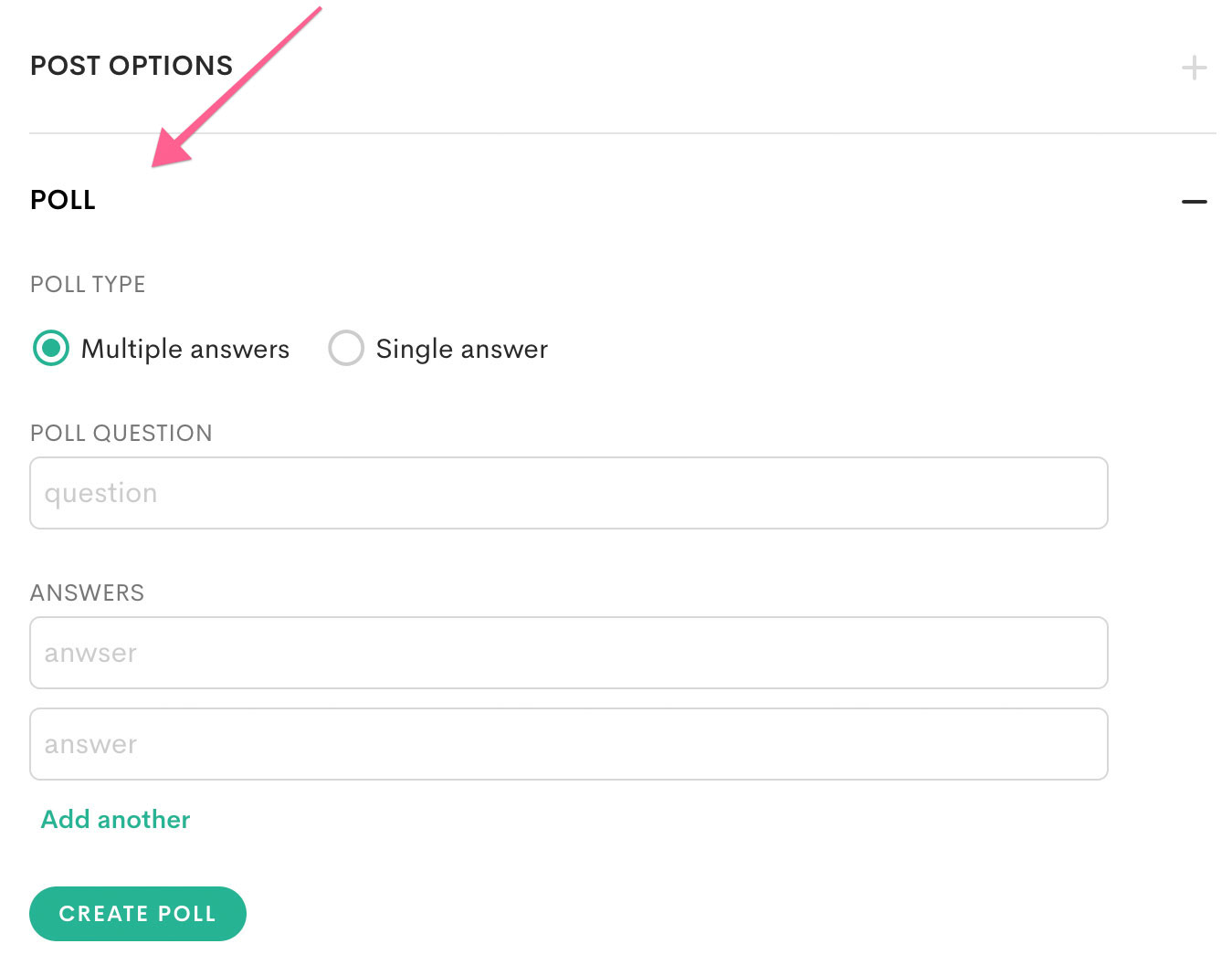 Look for the "Poll" section near the bottom of the post creation form. Click on the label to expand the poll options. This will reveal the poll creation interface.