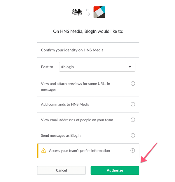 That's it, your BlogIn and Slack account are now linked.